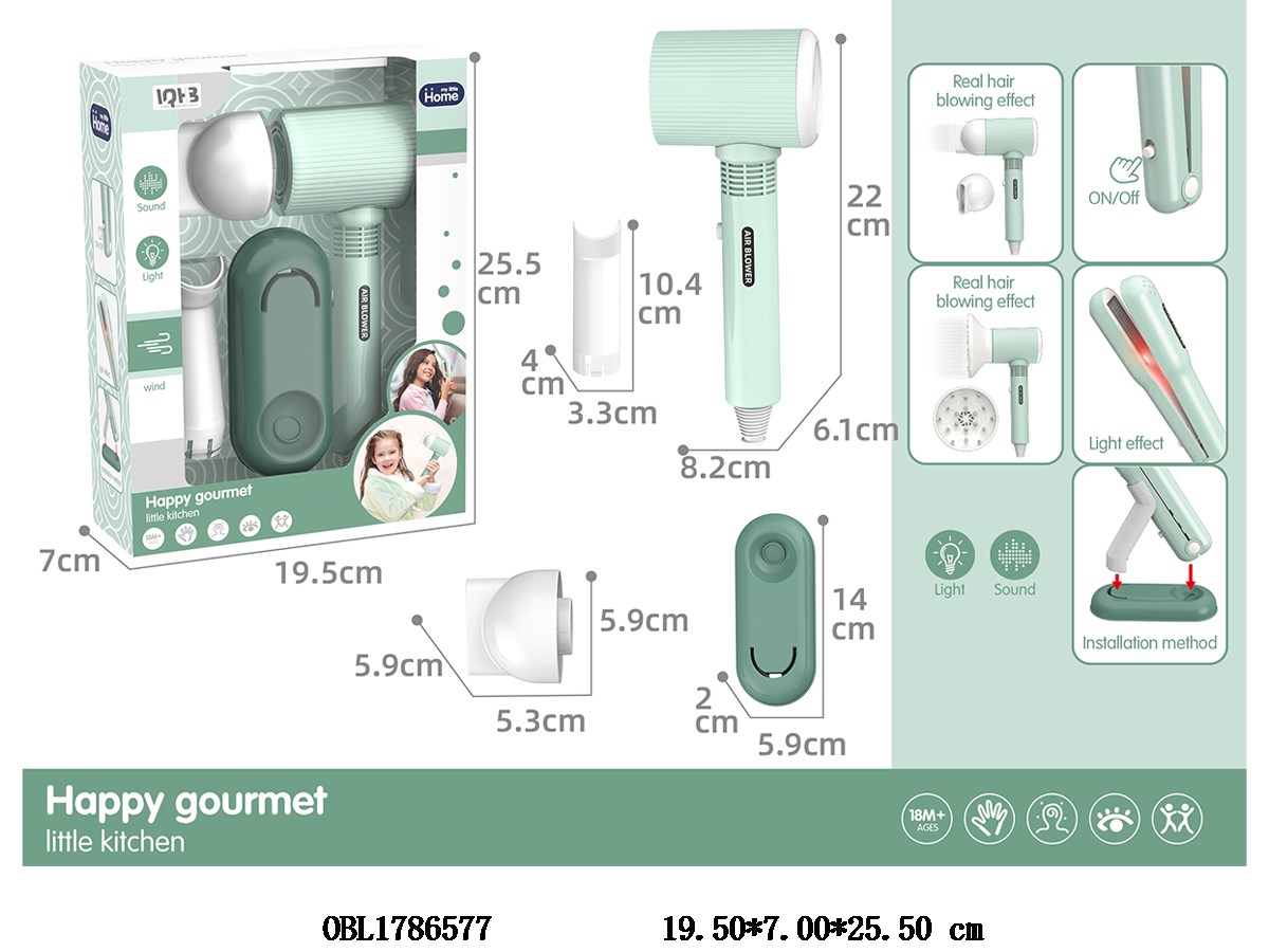 Hairdressing set electric hair dryer 3 * AAA, no electricity included