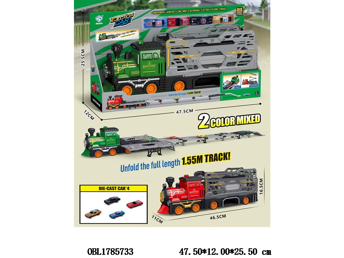 Home > F/P Railcar > Inertial catapult vehicle set with 4 alloy sliding vehicles, dual catapult tracks, and 2 color mixed design