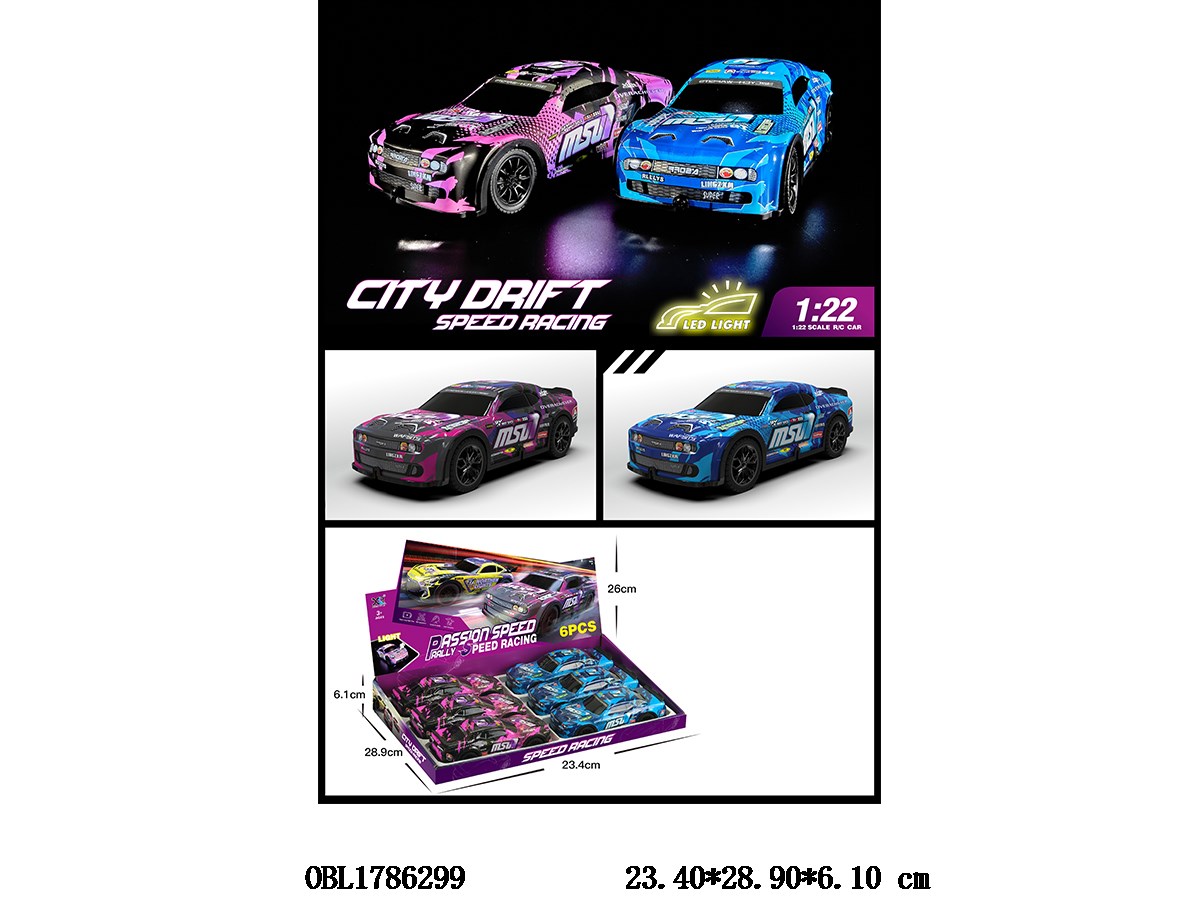 Home > F/P Car > Inertial racing car with lighting, music, 4 * AG13, electric package, 2 colors mixed, 6 pieces per display box