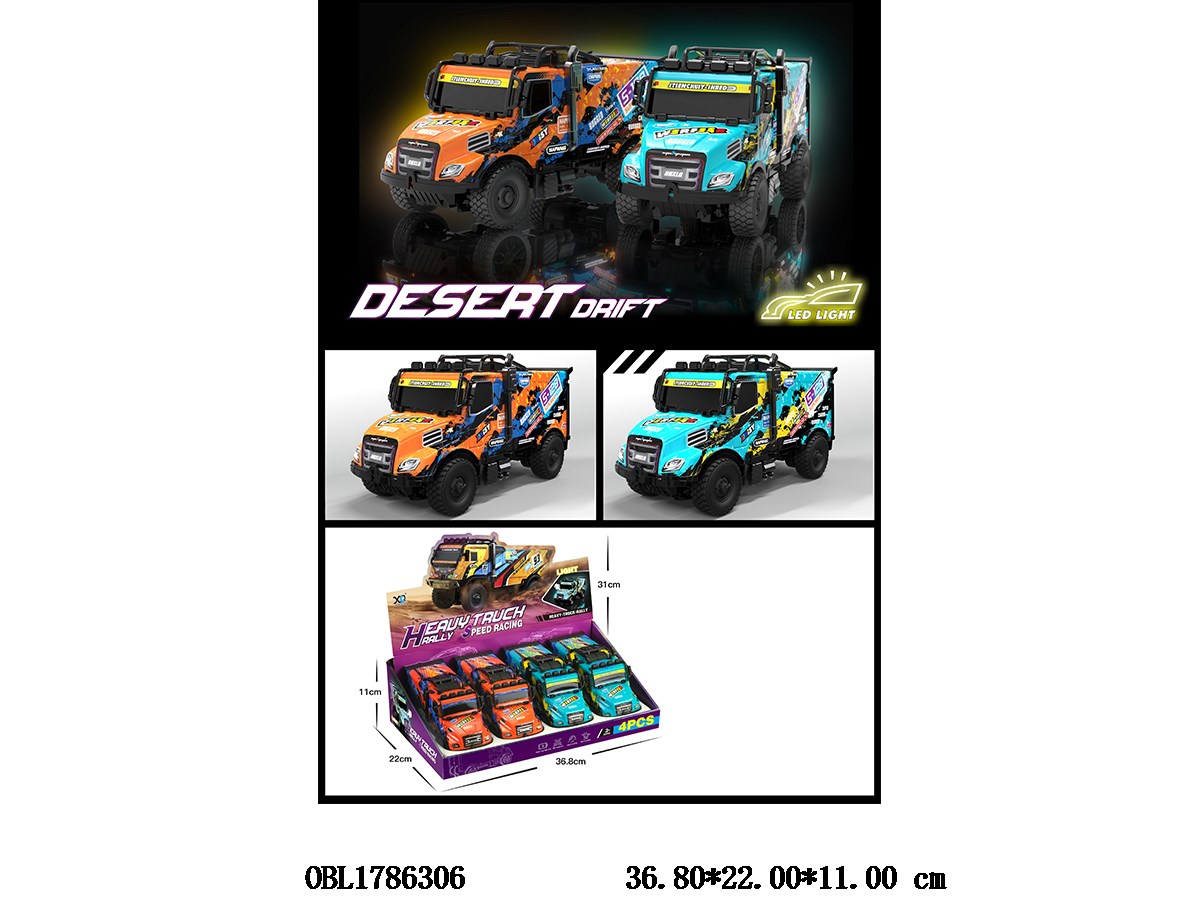 Home > F/P Car > Inertial heavy-duty truck racing car with lighting, music, 4 * AG13, electric package, 2 colors mixed, 4 pieces in one display box