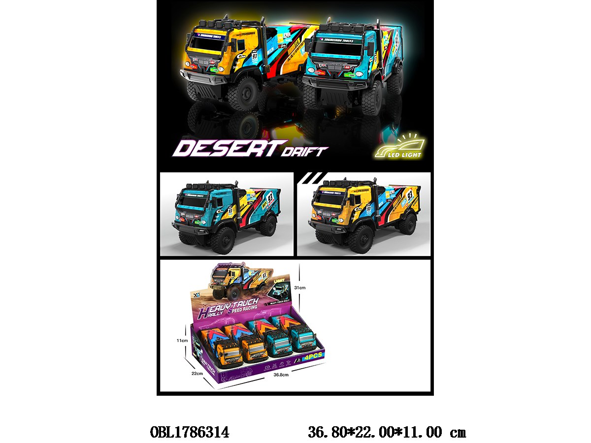 Home > F/P Car > Inertial heavy-duty truck racing car with lighting, music, 4 * AG13, electric package, 2 colors mixed, 4 pieces in one display box