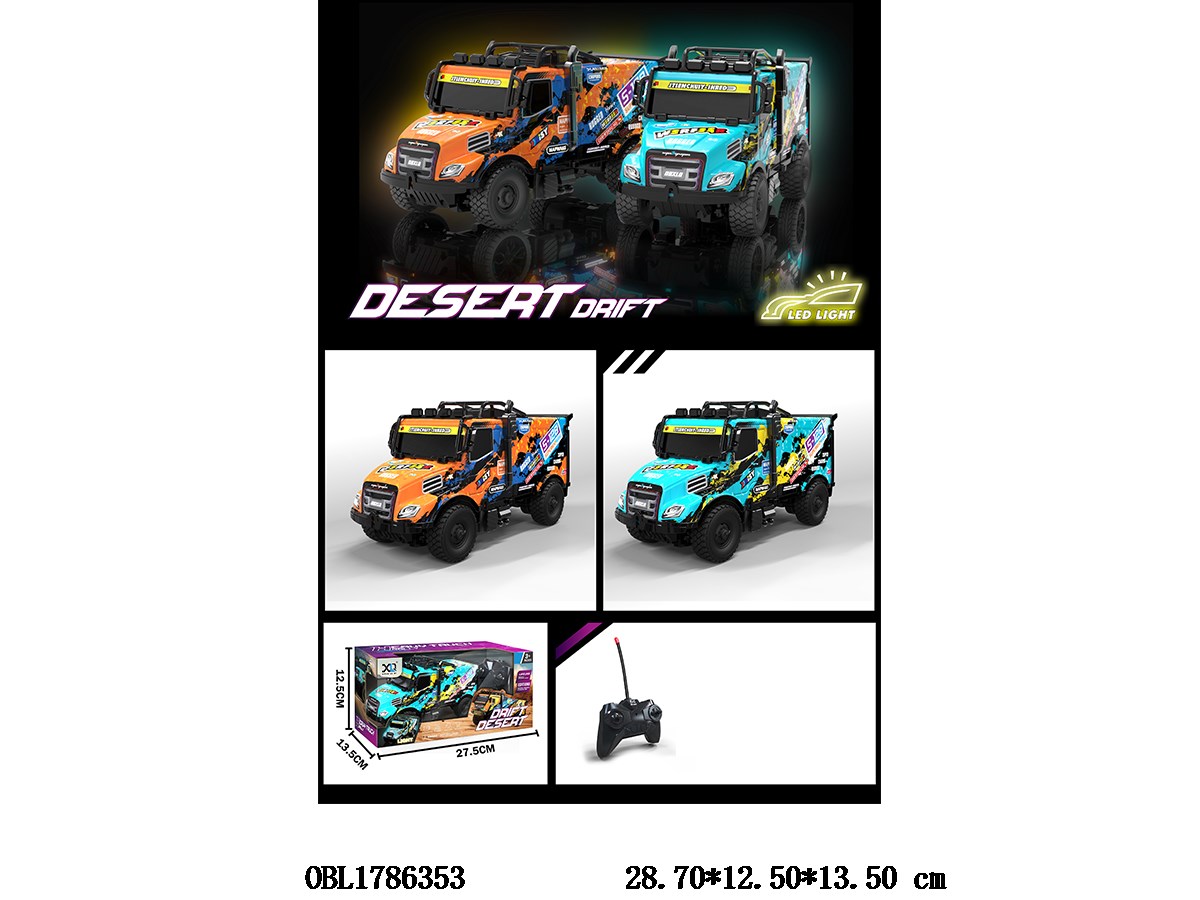 Home > R/C Car > Four way remote control heavy-duty truck with lights, body 3 * AA, no electricity included, remote control 2 * AA, no electricity included, 27 frequency, 2 color mixed design