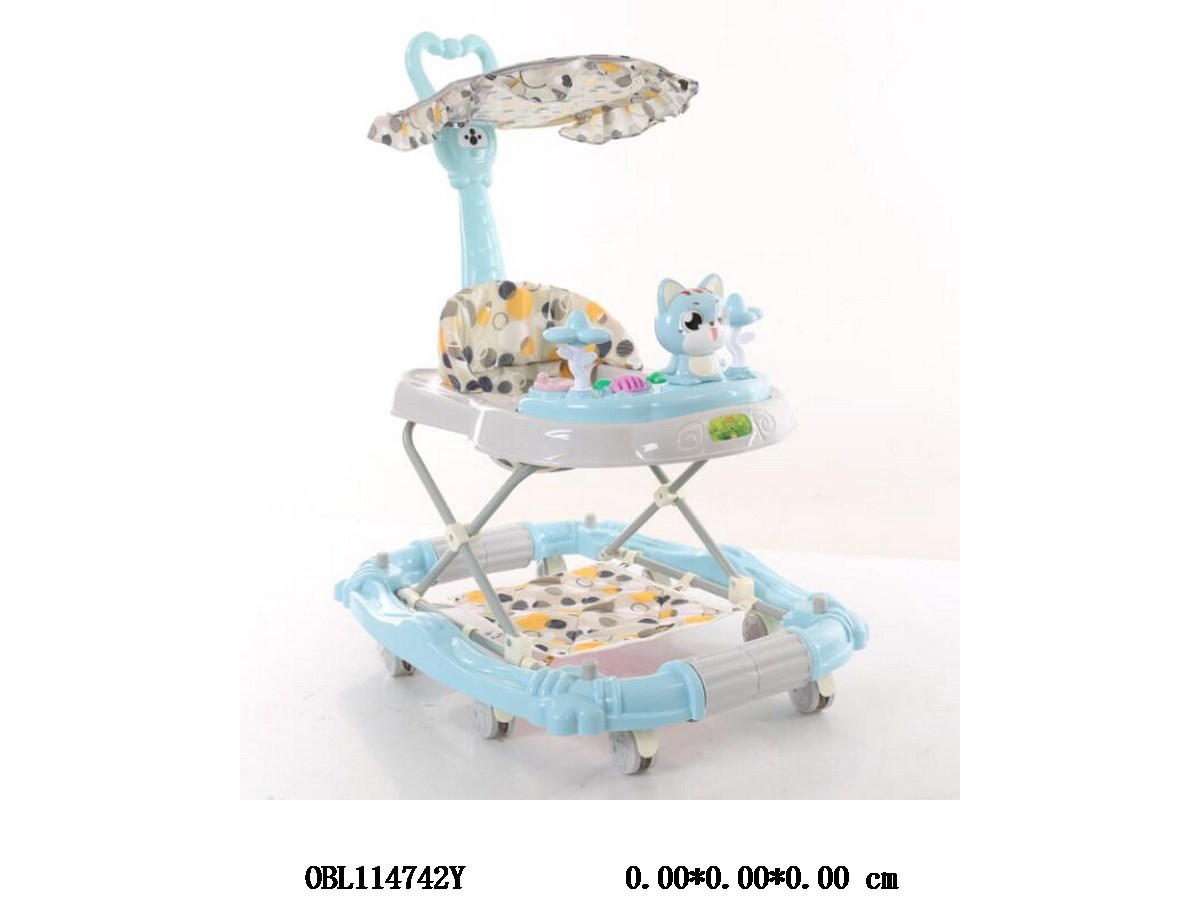 Walker with music, canopy, push handle, step pad, blue-green, pink, 3-color mixed