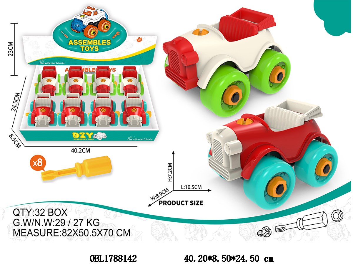Disassemble and assemble convertible car with 2 colors mixed, 8 pieces in 1 display box