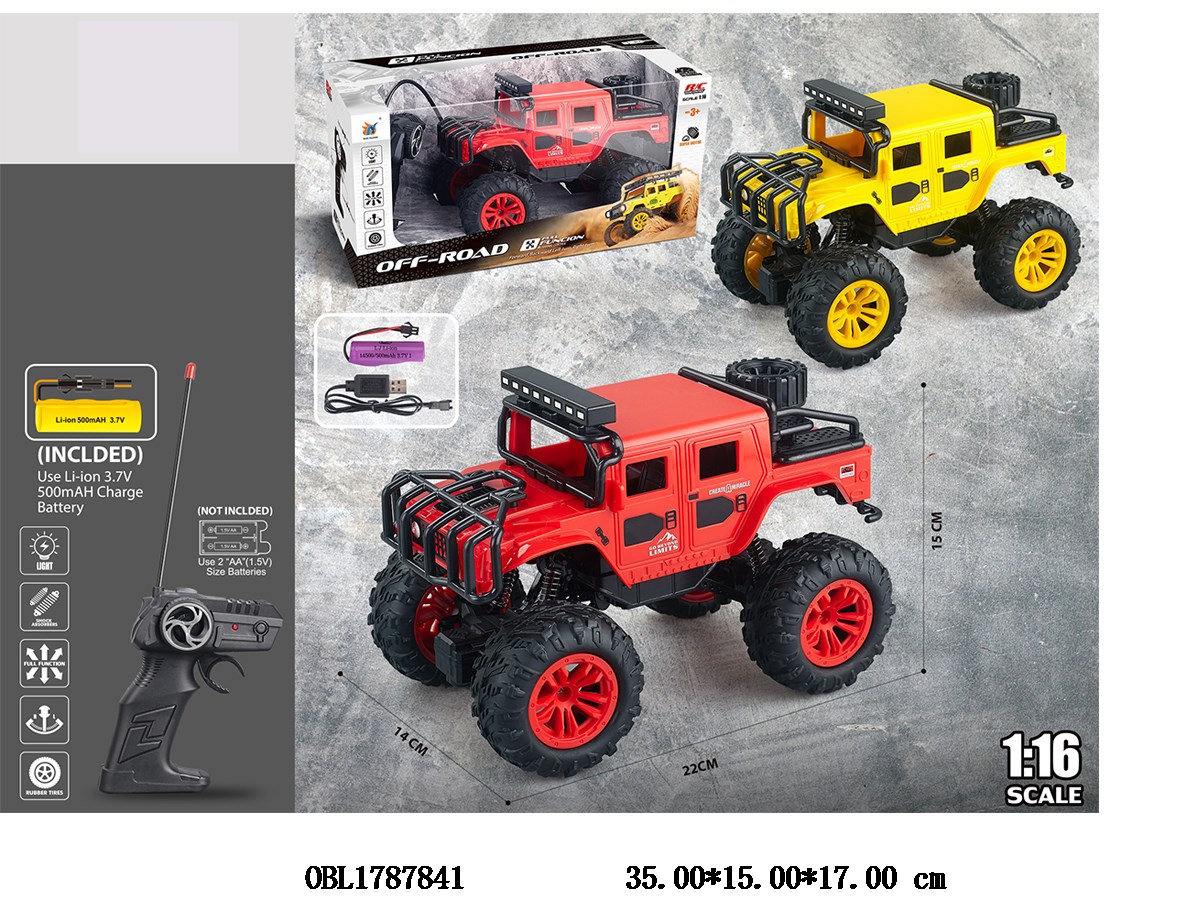 1: 16 Four way remote control off-road vehicle with lights and USB cable. Body 3.7V lithium battery with power included remote control 2 * AA without power included. 27 frequency, 2 color mixed
