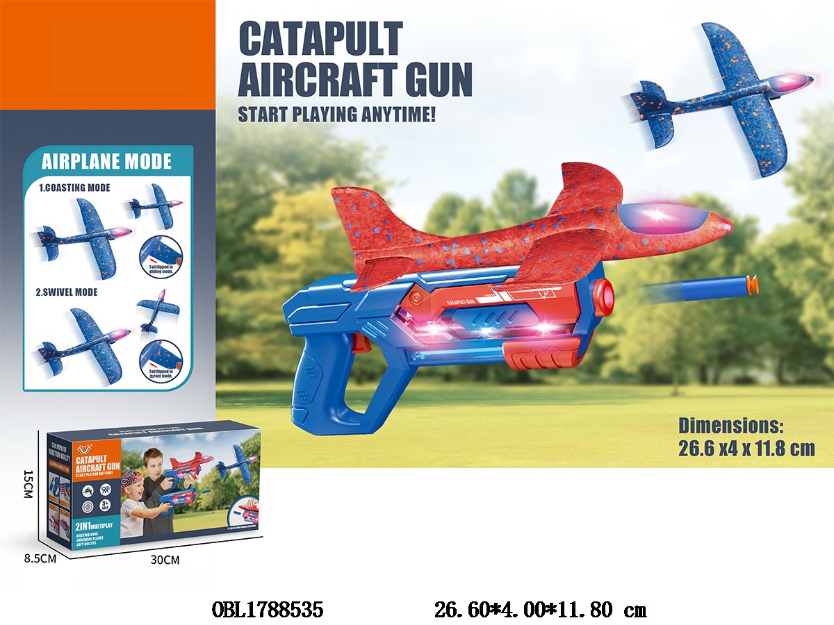 2-in-1 EVA soft bullet gun/catapult aircraft gun set with lights, aircraft 4 * AG3 included, electric gun 2 * AAA not included