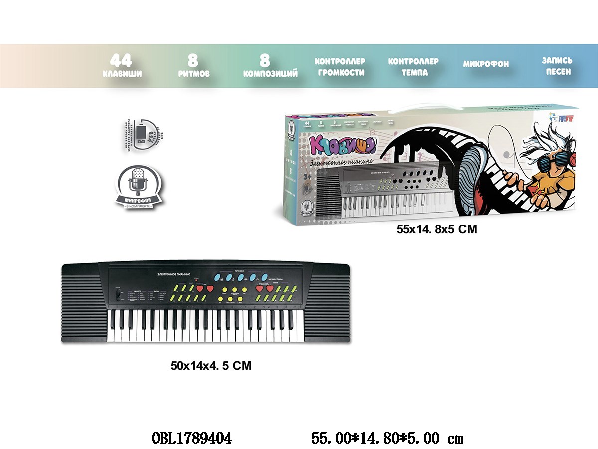 44 key multifunctional electronic keyboard with USB cable, microphone 4 * AA, no power included