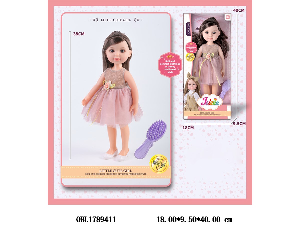 15 inch fully vinyl doll with comb body clothing, 1 style, 1 color