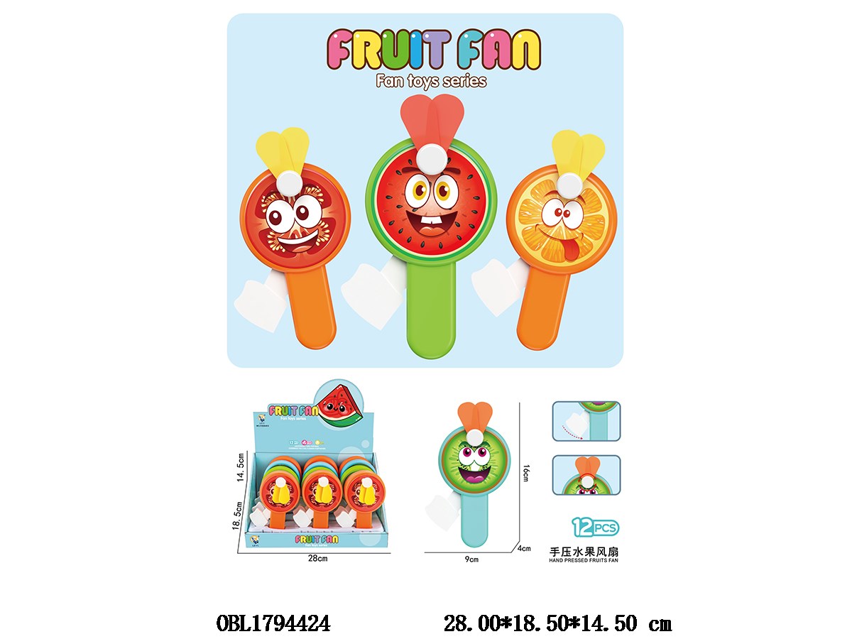 Hand pressed fruit fan, 12 pieces per display box, 4 mixed designs