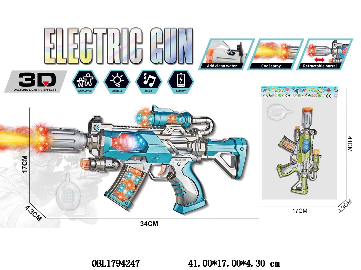Home > B/O Gun > Electric gun with flash music spray 3 * AA non electric 2-color mixed