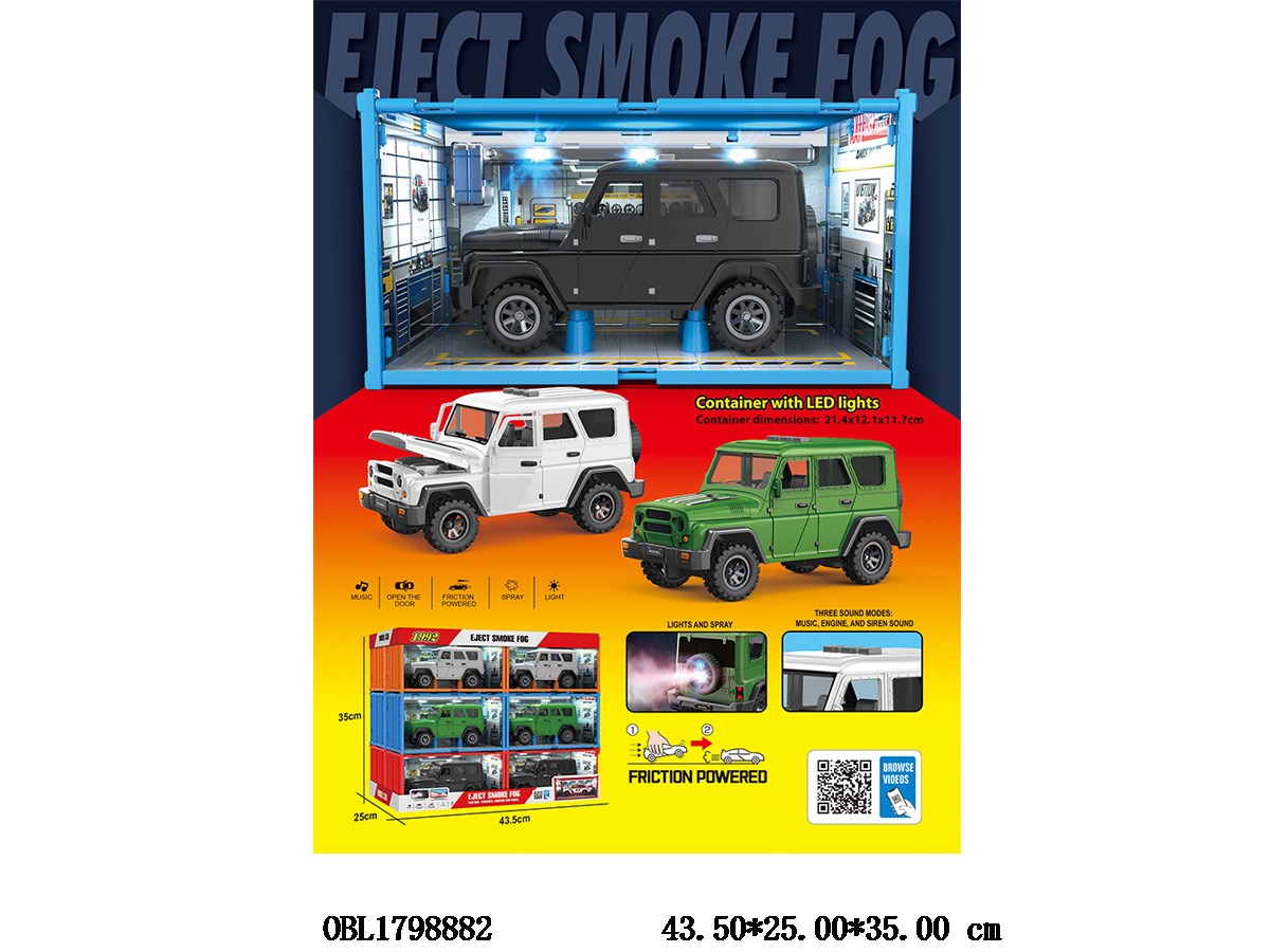Inertial vehicle with light and sound, spray, openable, 2 * AAA, no electricity, 3-color mixed package, 12 small boxes, one display box