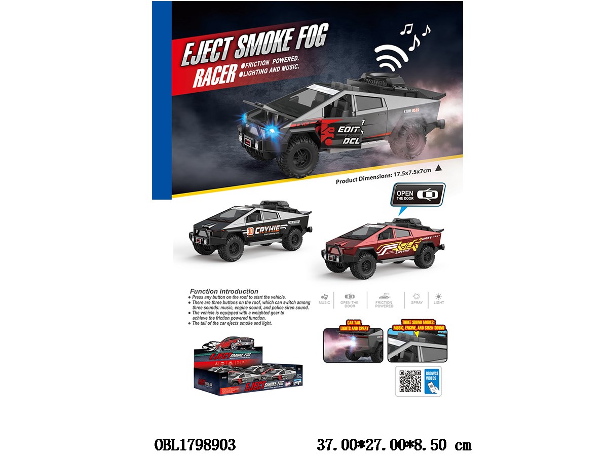 Inertial vehicle with light and sound, spray, openable, 2 * AAA, non electric, 3 color mixed package, 6 pieces, one display box