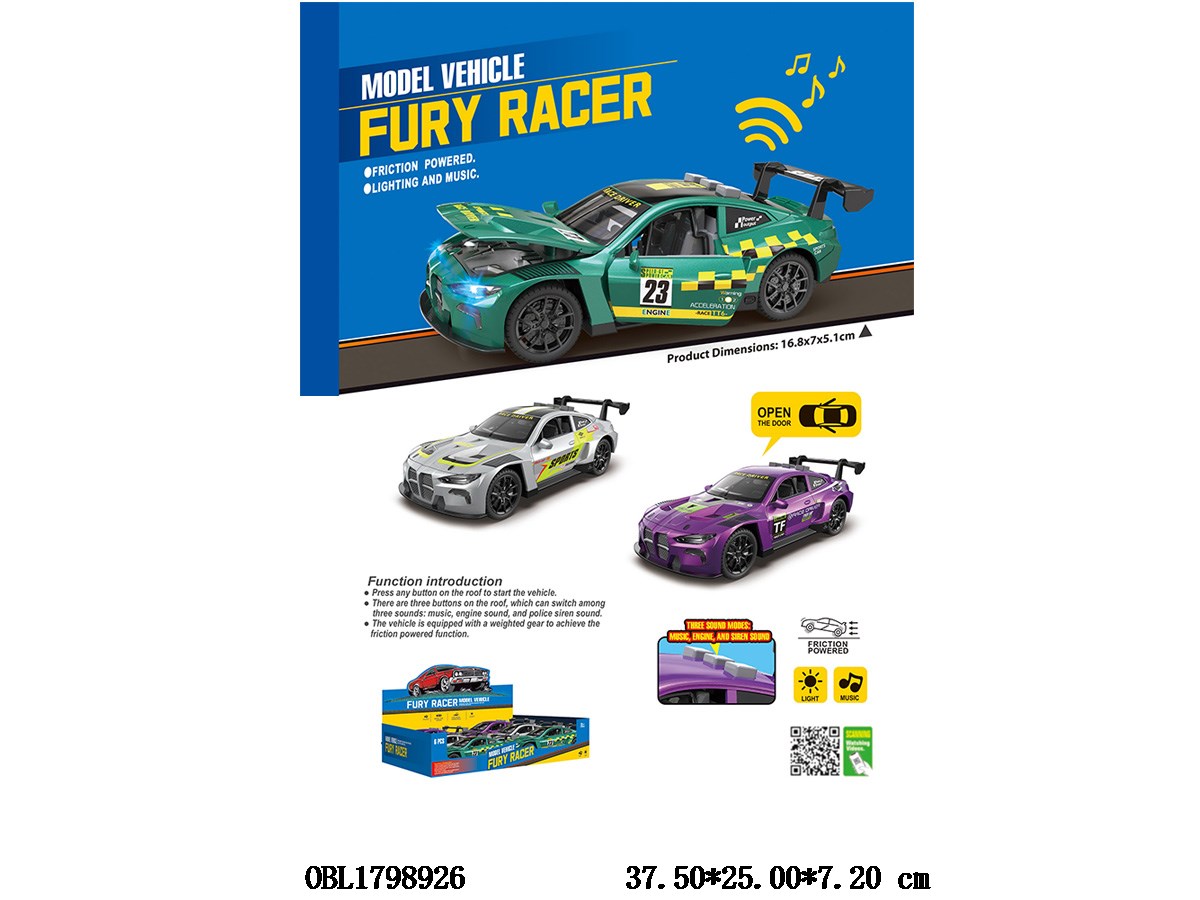 Home > F/P Car > Inertial car with lights and sound, can open door 2 * AAA, no electricity included, 3 colors mixed, 6 pieces packed in one display box