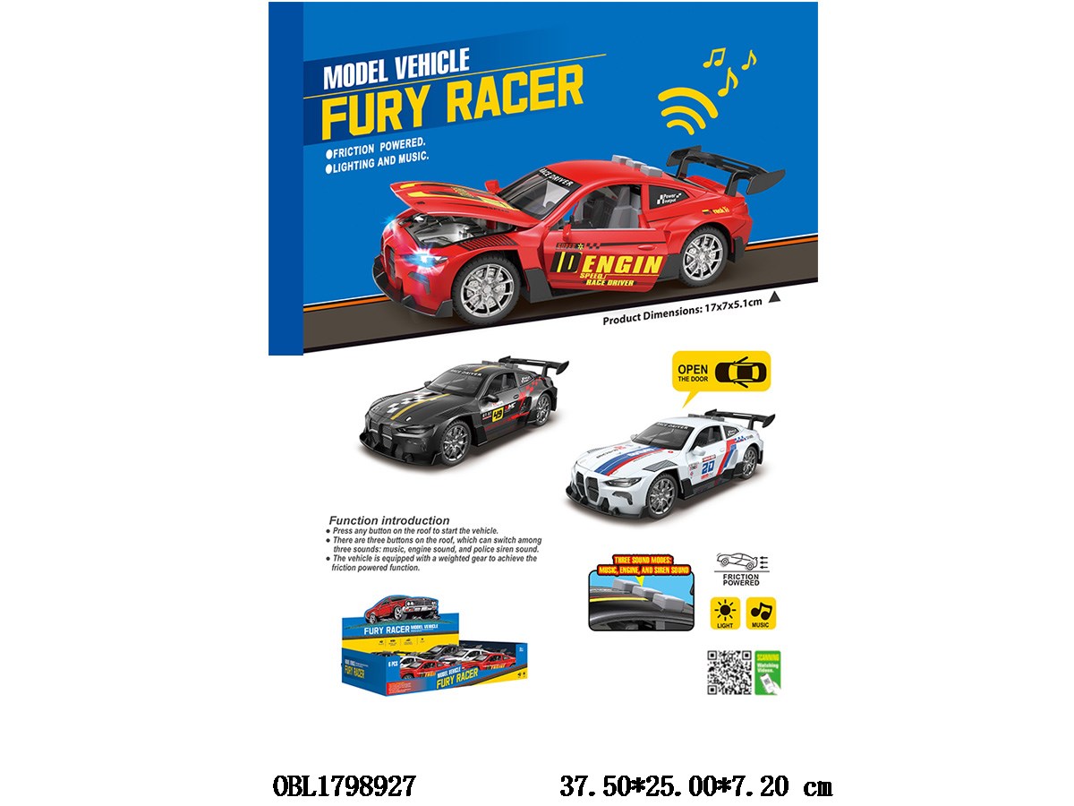 Home > F/P Car > Inertial car with lights and sound, can open door 2 * AAA, no electricity included, 3 colors mixed, 6 pieces packed in one display box