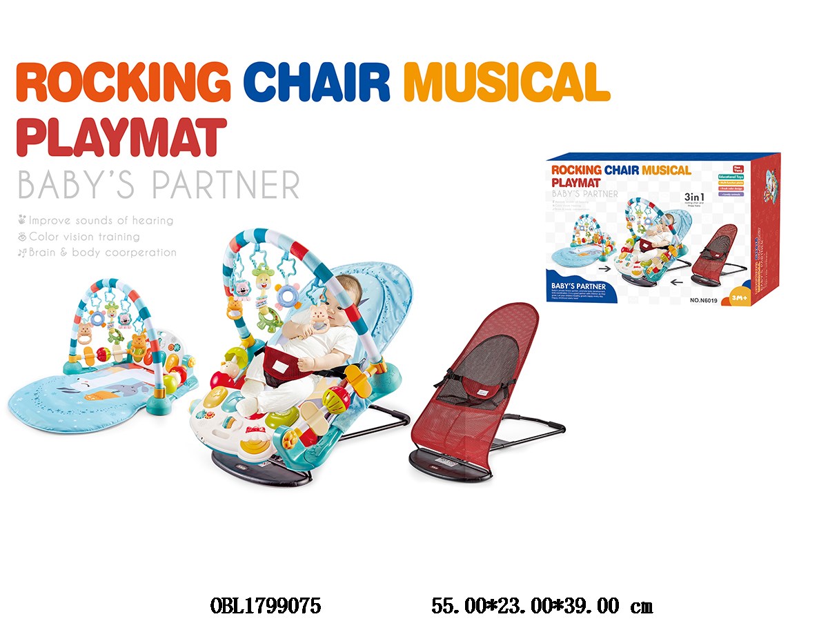 3-in-1 baby pedal piano/carpet/rocking chair with lighting, music guardrail 3 * AA, no power included