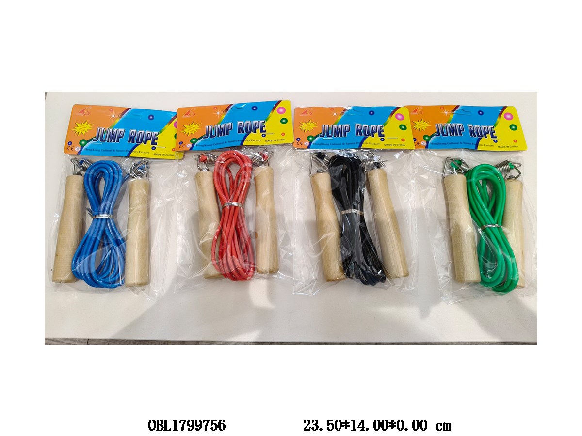 Spring wood handle rubber skipping rope mixed with multiple colors