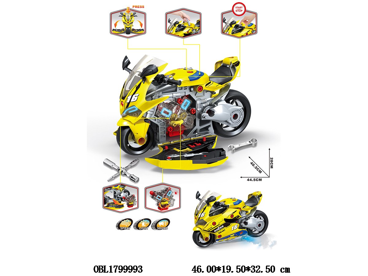 Home > Disassembling Motorcycle > DIY assembled motorcycle/engine package with light and sound effect spray engine 3 * AG13 electric car 3 * AAA electric car not included