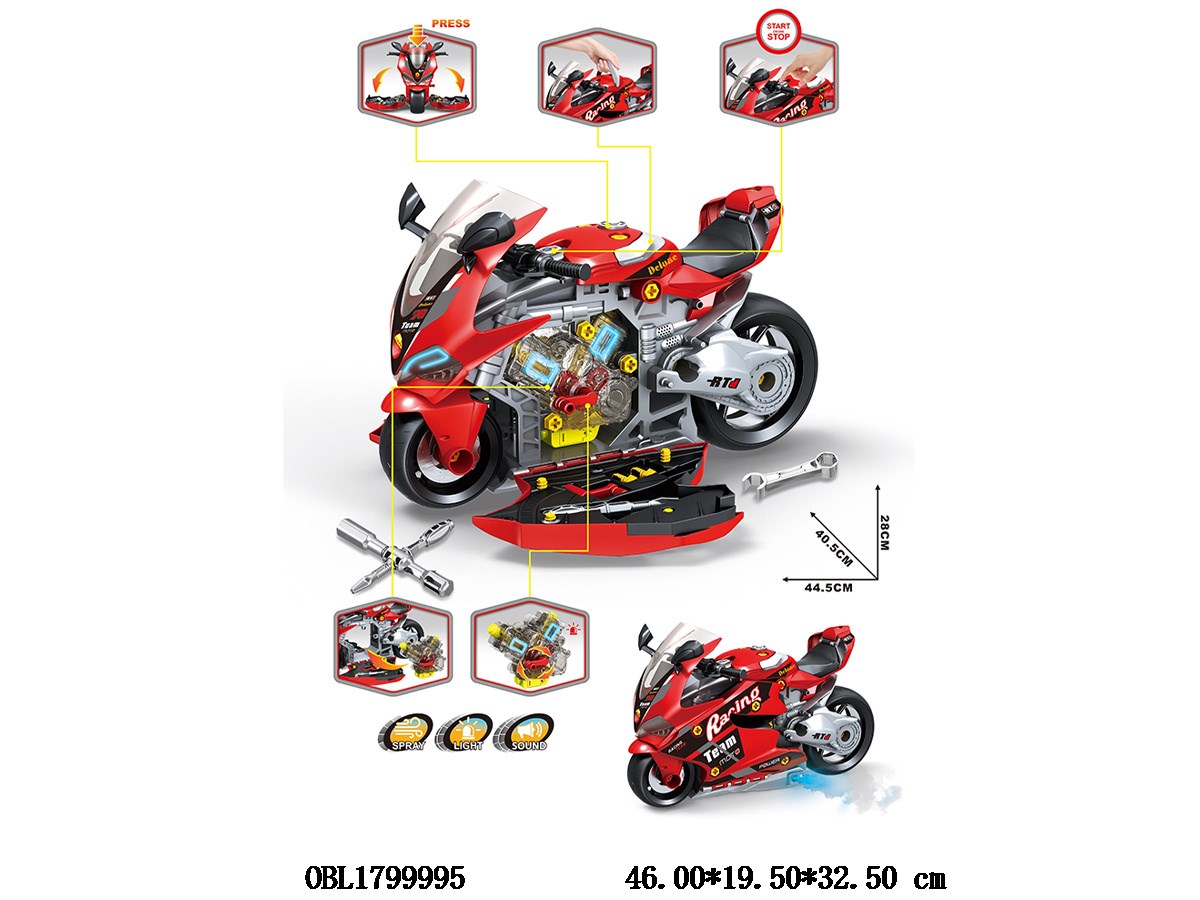 Home > Disassembling Motorcycle > DIY assembled motorcycle/engine package with light and sound effect spray engine 3 * AG13 electric car 3 * AAA electric car not included