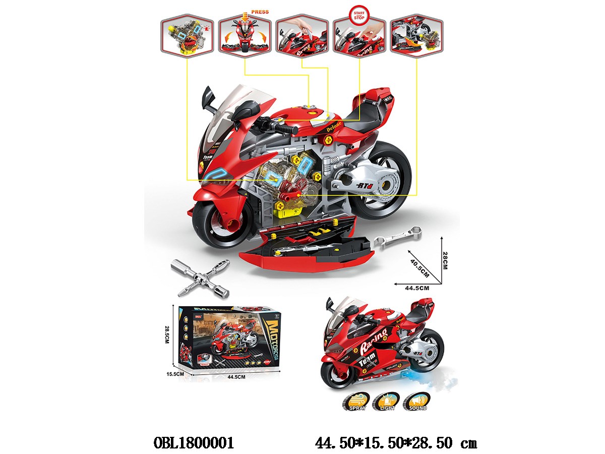 Home > Disassembling Motorcycle > DIY assembled motorcycle/engine package with light and sound effect spray engine 3 * AG13 electric car 3 * AAA electric car not included