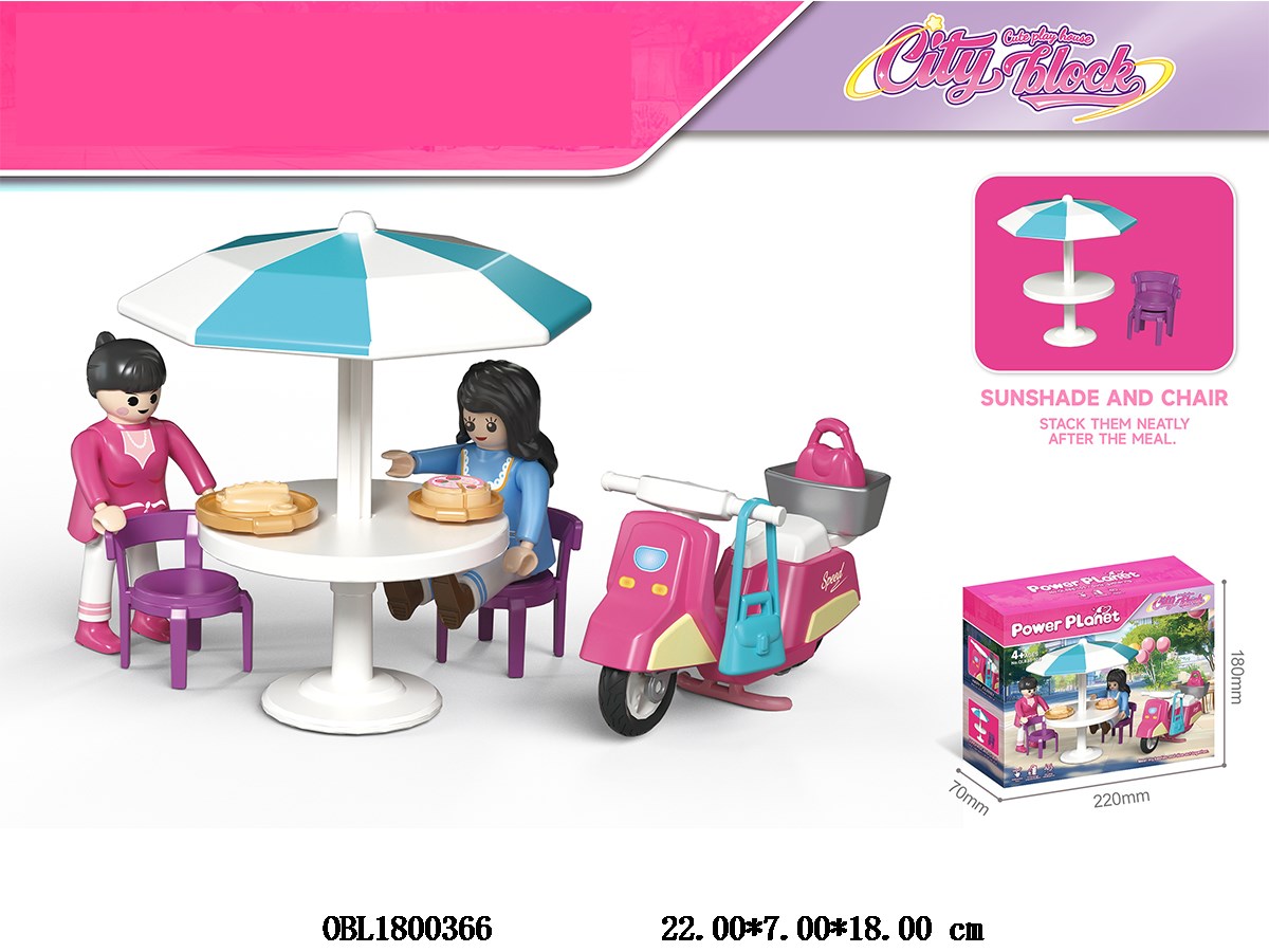Home > Other Accessory Sets > Afternoon tea scene with parasol/scooter and 2 dolls