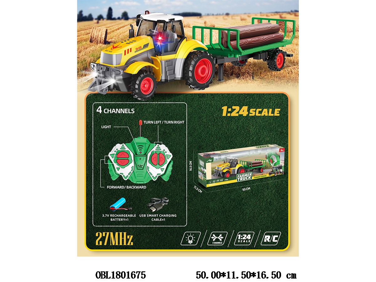 Home > R/C Car > 1: 24 way remote control farmer s cart, wood transport cart with lights and USB cable, body 3.7V lithium battery with remote control 2 * AA, no power, 27 frequency