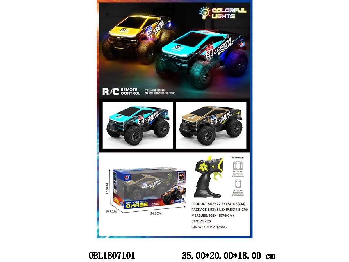 5-way remote control off-road vehicle with lights, body 4 * AA without power, remote control 2 * AA without power, 27 frequency, 2 color mixed