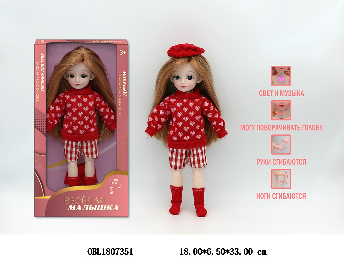 Home > Dolls > Russian 12 inch 3D simulation eye, real body, movable joint, Barbie with lighting, music, Russian IC main body clothing, 1 color, 3 * LR44 package, electric