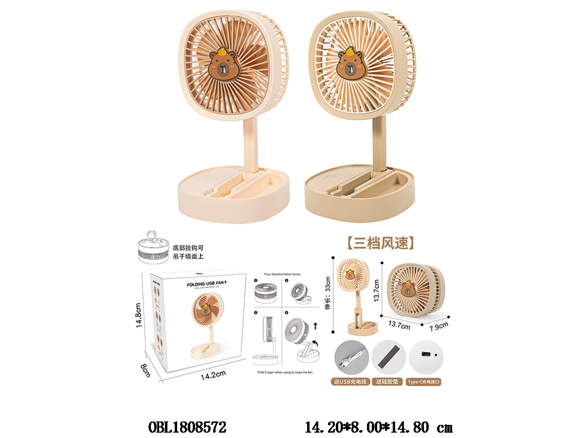 Folding storage fan with silicone pad and USB cable, mixed in 2 colors