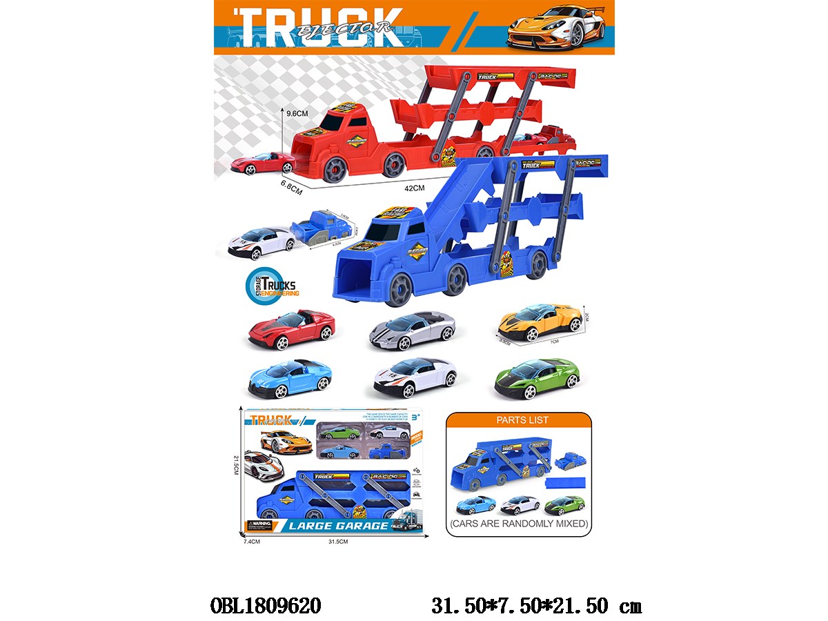 Home > Pop-Up Toys > Launch storage car with 3 sliding cars, 1 catapult, large car with 2 colors, mixed car style, random