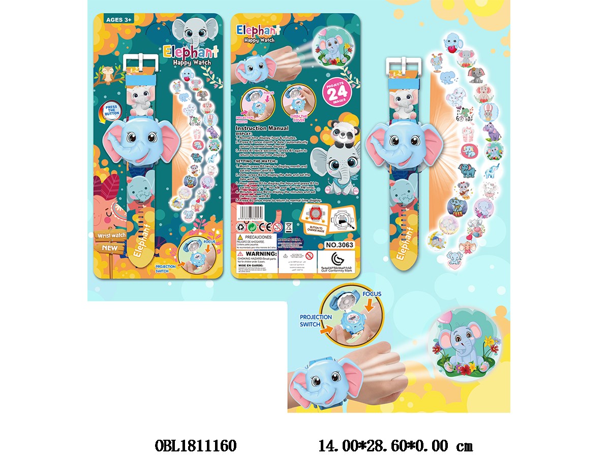 Cartoon Elephant Flip Projection Watch 4 * AG3 Power Pack