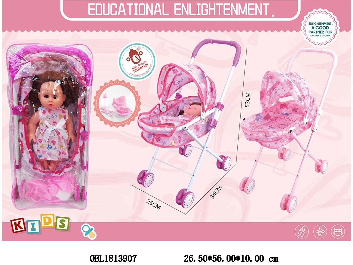 Home > Baby Stroller > Doll iron cart set with 14 inch empty body doll in 2 colors mixed