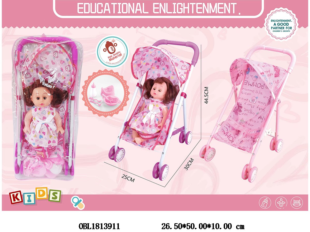Home > Baby Stroller > Doll iron cart set with 14 inch empty body doll in 2 colors mixed