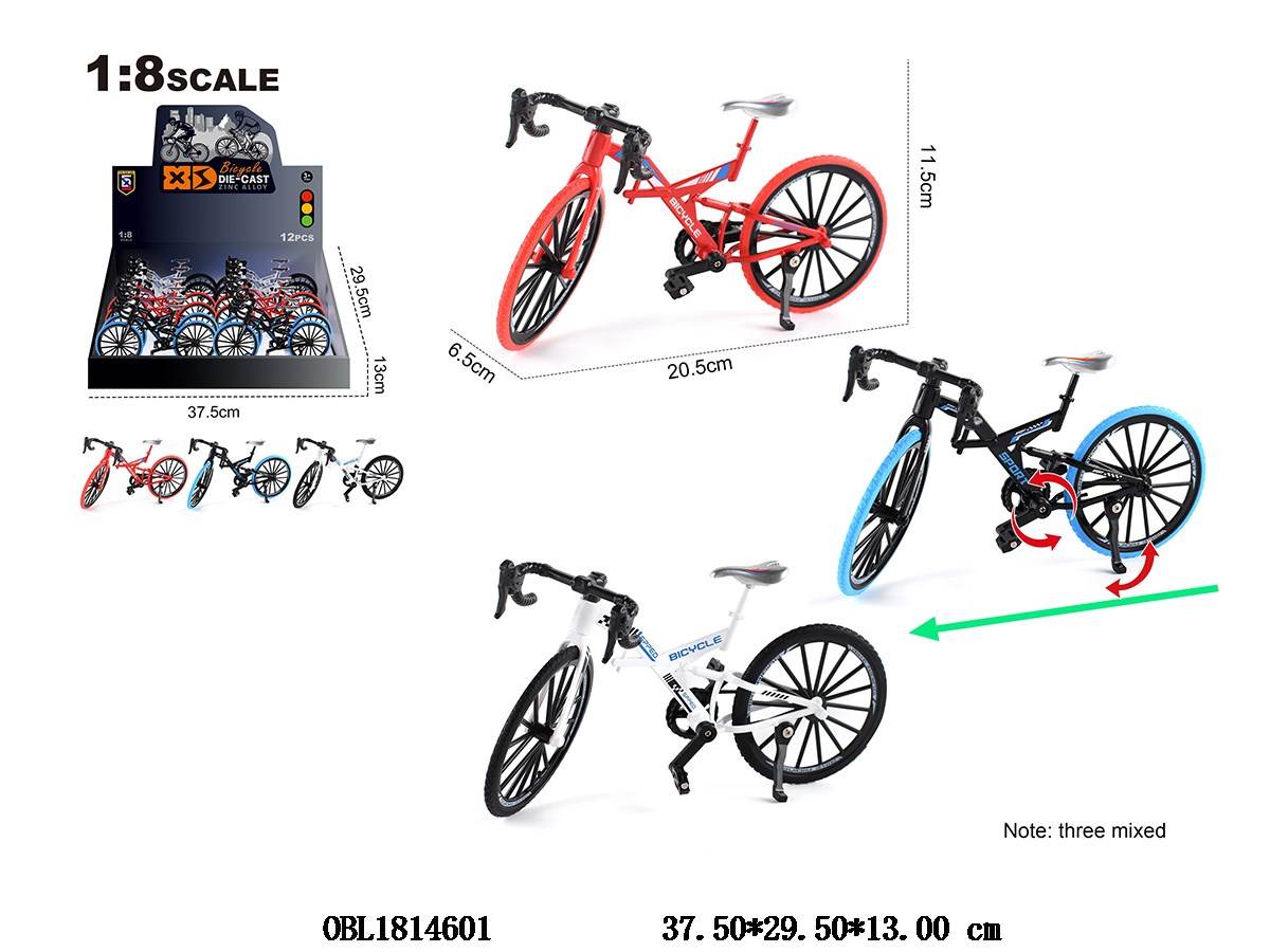 1: 8 Die cast Zinc Alloy Sliding Bicycles, 3 colors mixed, 12 pieces per display box