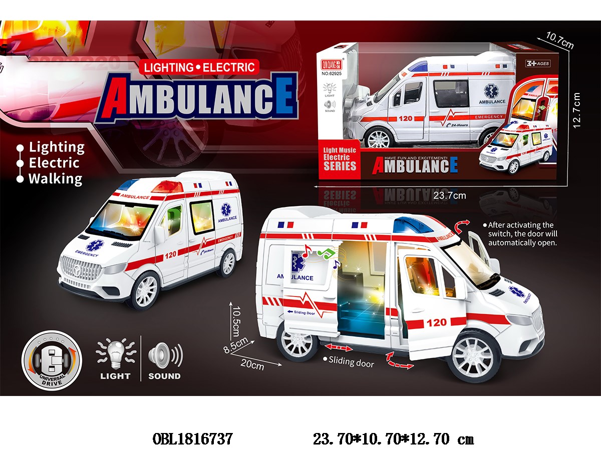 Electric ambulance with lights, music, 3 * AA, no electricity included