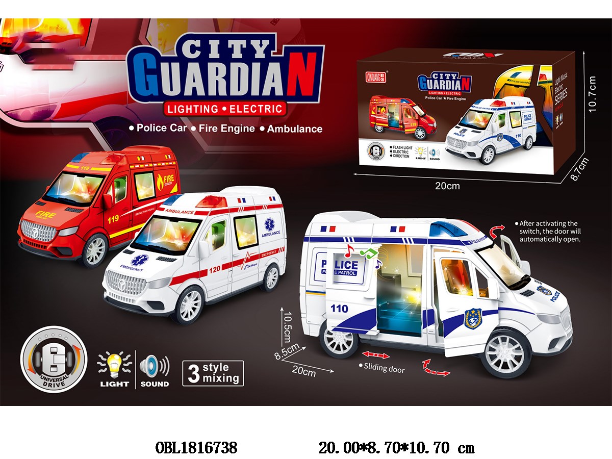 Home > B/O Car > Electric ambulance with lights, music, 3 * AA, no electricity included, 3 mixed models