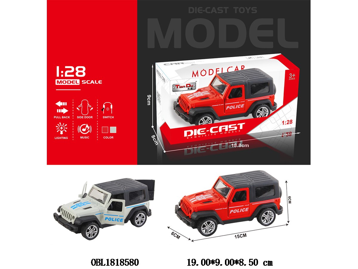 Home > Die-Cast Car > 1: 28 simulation alloy regenerative police car with lights, music, 3 * AG3, electric package, 2 mixed models, can open the door