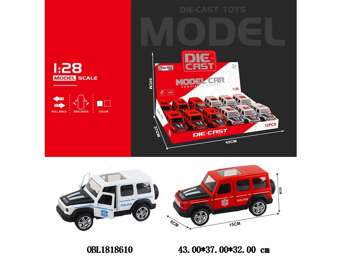 Home > Die-Cast Car > 1: 28 simulation alloy regenerative police car can open doors, 2 mixed models, 12 pieces, 1 display box