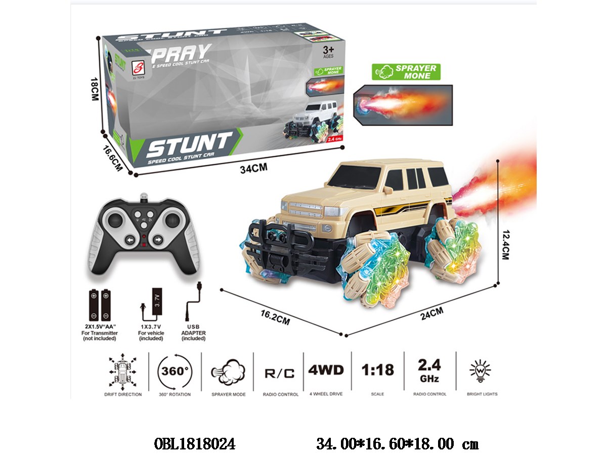 Jiutong remote control vehicle with light spray, USB cable, body 3.7V battery pack, electric remote control, 2 * AA, no power pack, 2.4G frequency, white/desert yellow mixed