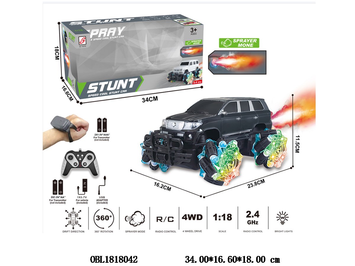 Home > R/C Car > Jiutong dual remote control car with light spray with USB cable body 3.7V battery pack electric remote control 2 * AA non electric remote control watch 2 * AAA non electric 2.4G frequency red/white/black mixed