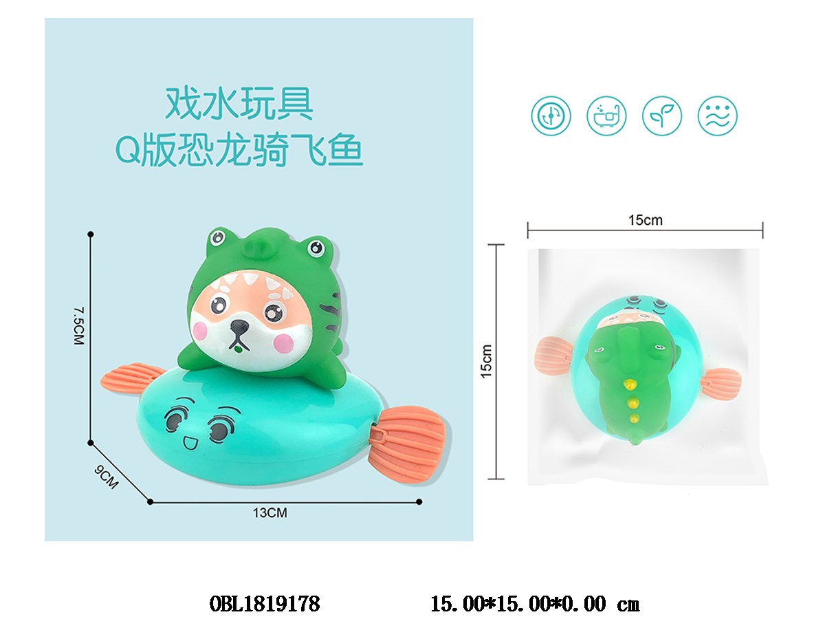 Home > Wind Up Animal > On chain dinosaur riding flying fish swimming toy