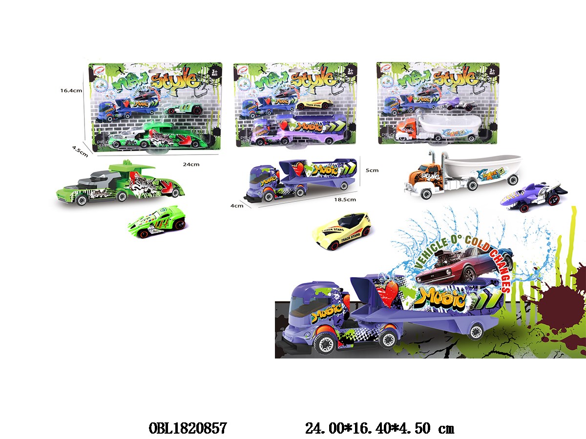 Home > Die-Cast Car > Alloy sliding container truck with 1 sliding alloy truck changing color when cold, mixed with 3 models