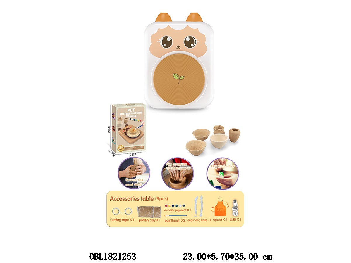 Home > Other Intellectual Games > Cute Pet Pottery Machine Set with USB Plug in Bag, Electric Apron, Random Color