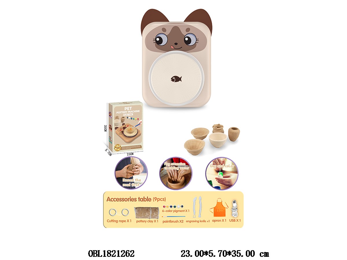 Home > Other Intellectual Games > Cute Pet Pottery Machine Set with USB Plug in Bag, Electric Apron, Random Color