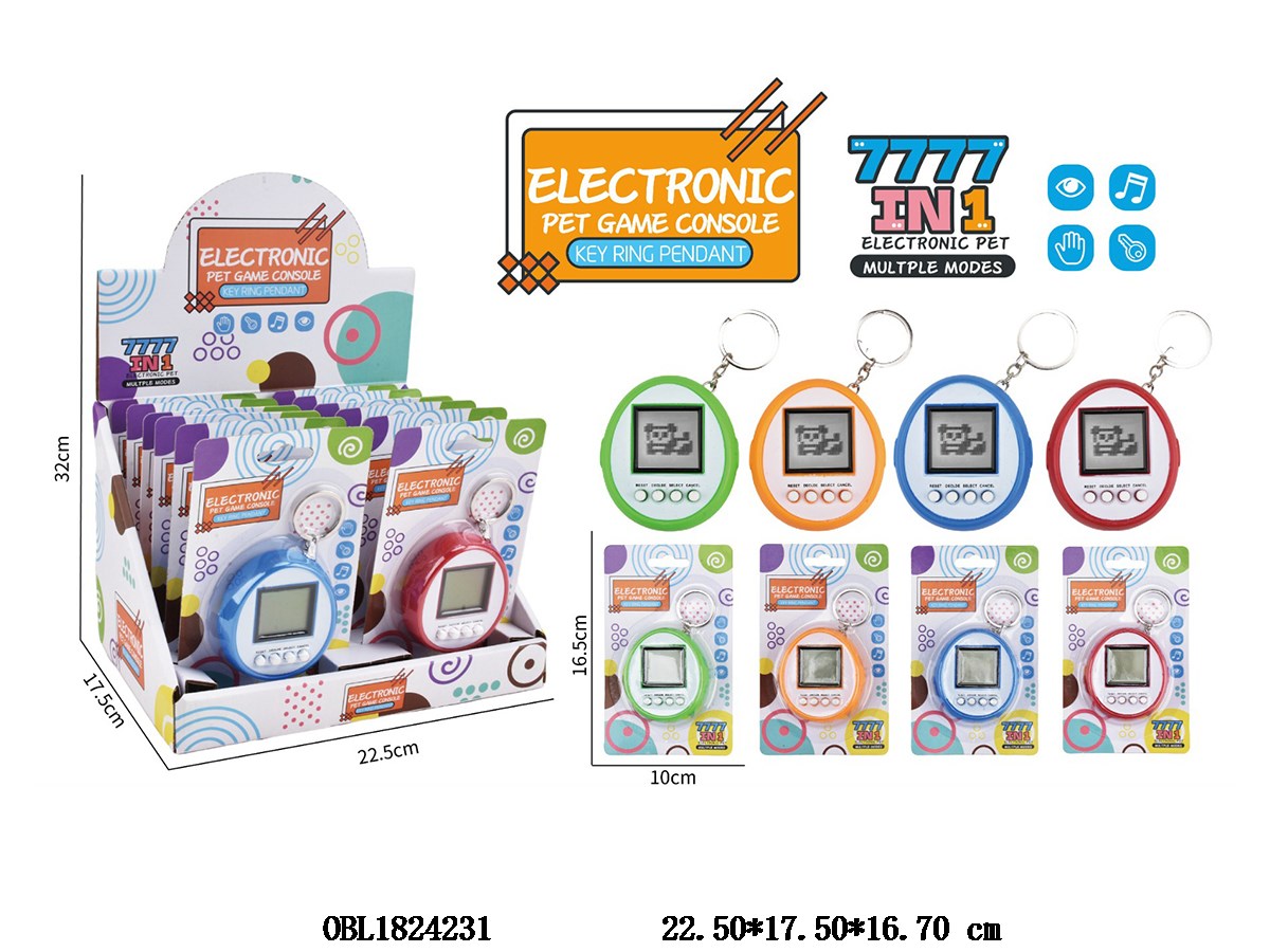 Pet game console with keychain 2 * AAA, no electricity included, 12 board pack, 1 display box, 4 color mixed packaging