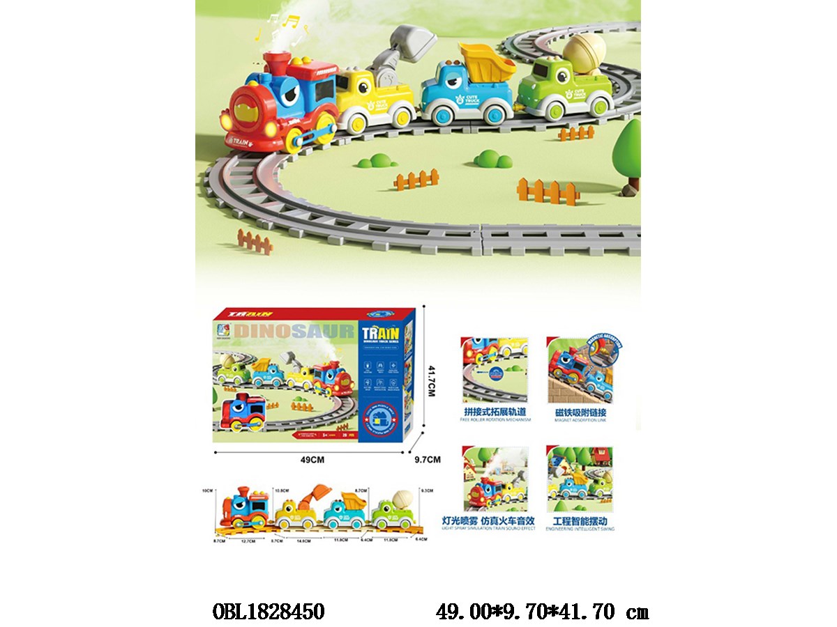 Home > B/O Railcar > Electric dinosaur train track suit locomotive head with light and sound effect spray magnet adsorption link 3 * AA without electricity