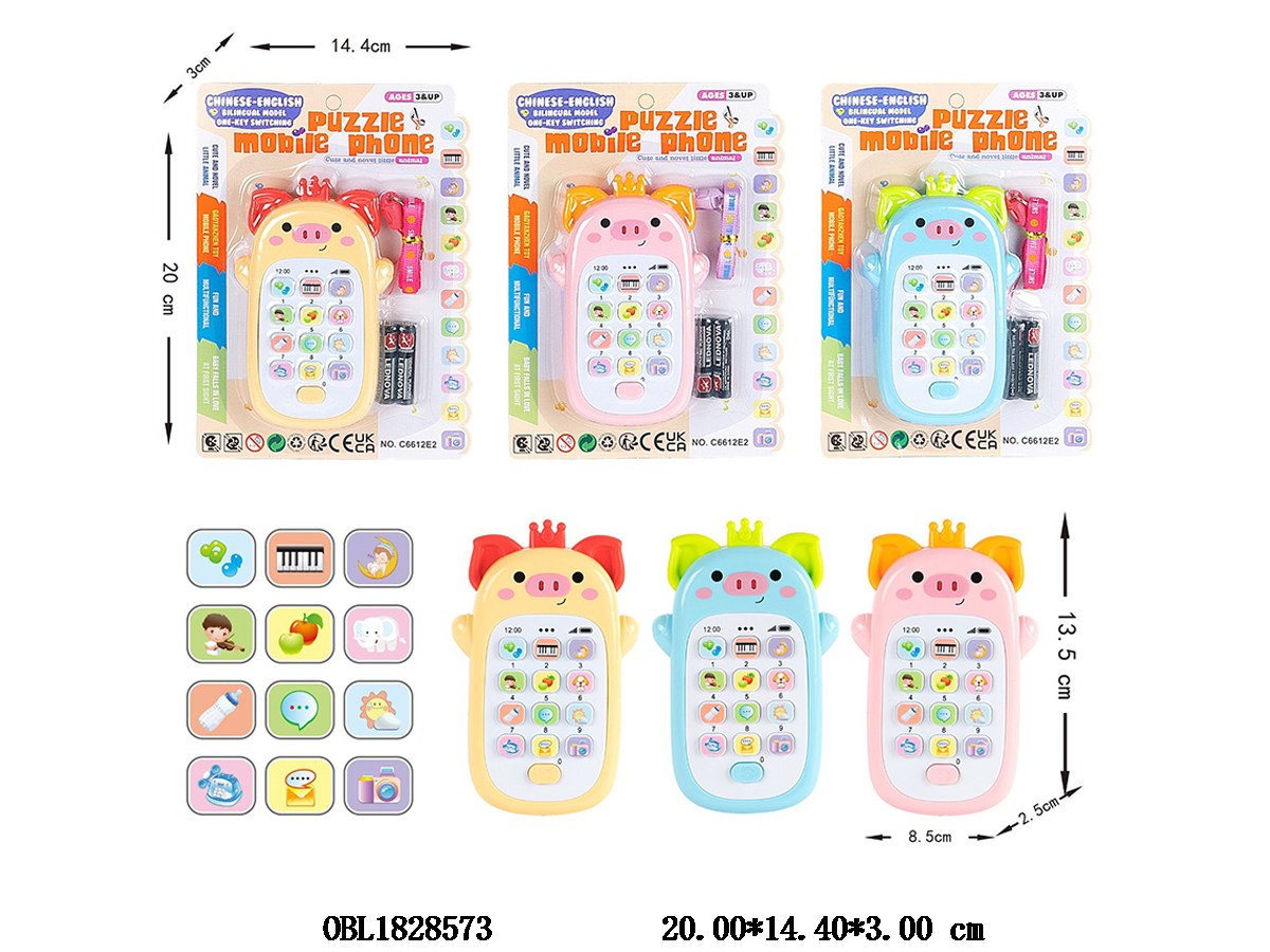 English puzzle pig mobile phone with music 2 * AAA power pack 3 color mixed package