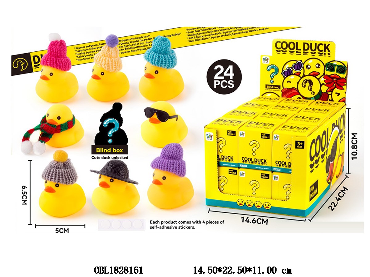 Home > Soft Plastic Animals > Vinyl duck blind box with BB whistle strap and adhesive backing, mixed with multiple options, packaged in 24 small boxes as a display box
