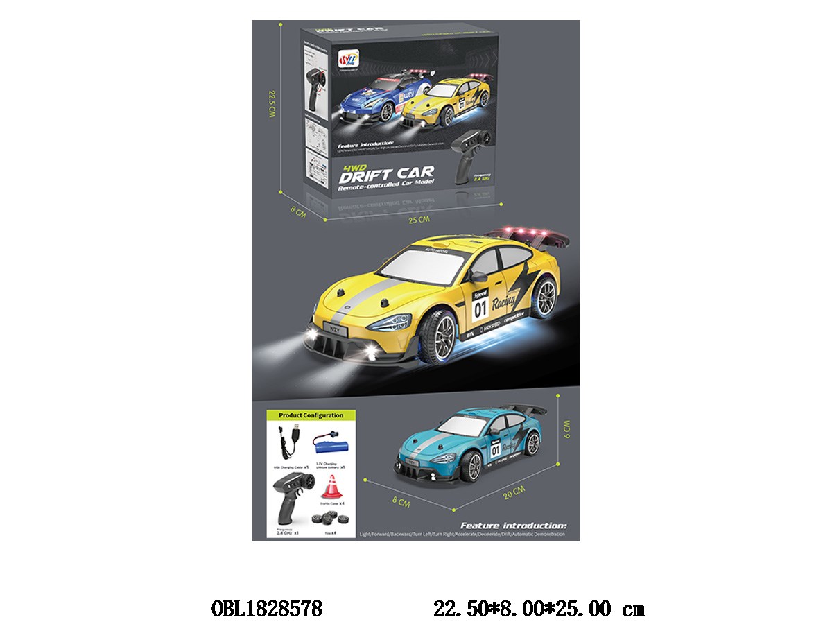 Home > R/C Car > 1: 20 remote control four-wheel drive drift car with lights and USB cable. Body 3.7V lithium battery with power included remote control 2 * AA without power included 2.4G frequency