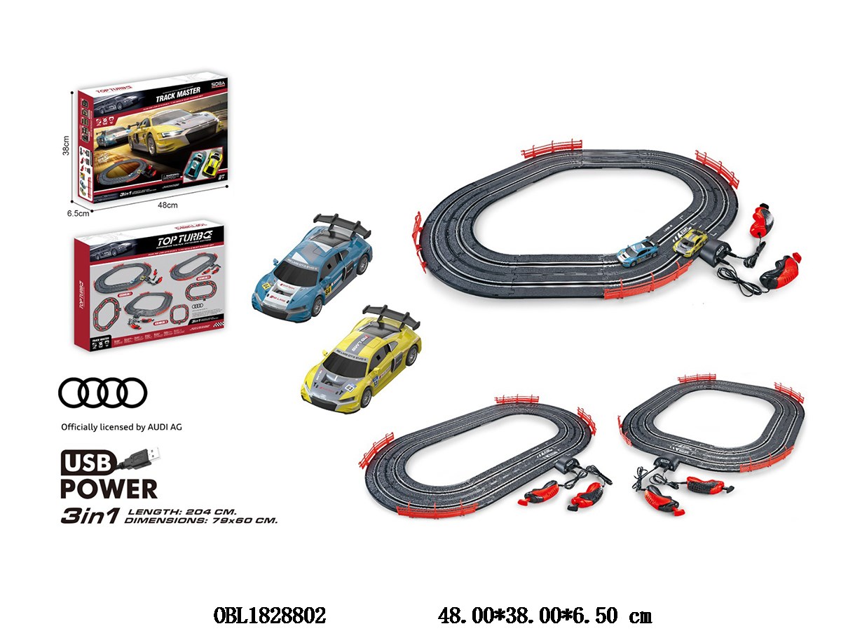 Home > R/C Railcar > 1: 43 Audi genuine authorized remote control track racing set with USB cable, self provided power bank or mobile phone charging plug, USB cable connected to track direct power supply remote control/car no need to install battery, motor power generation, no built-in lithium battery