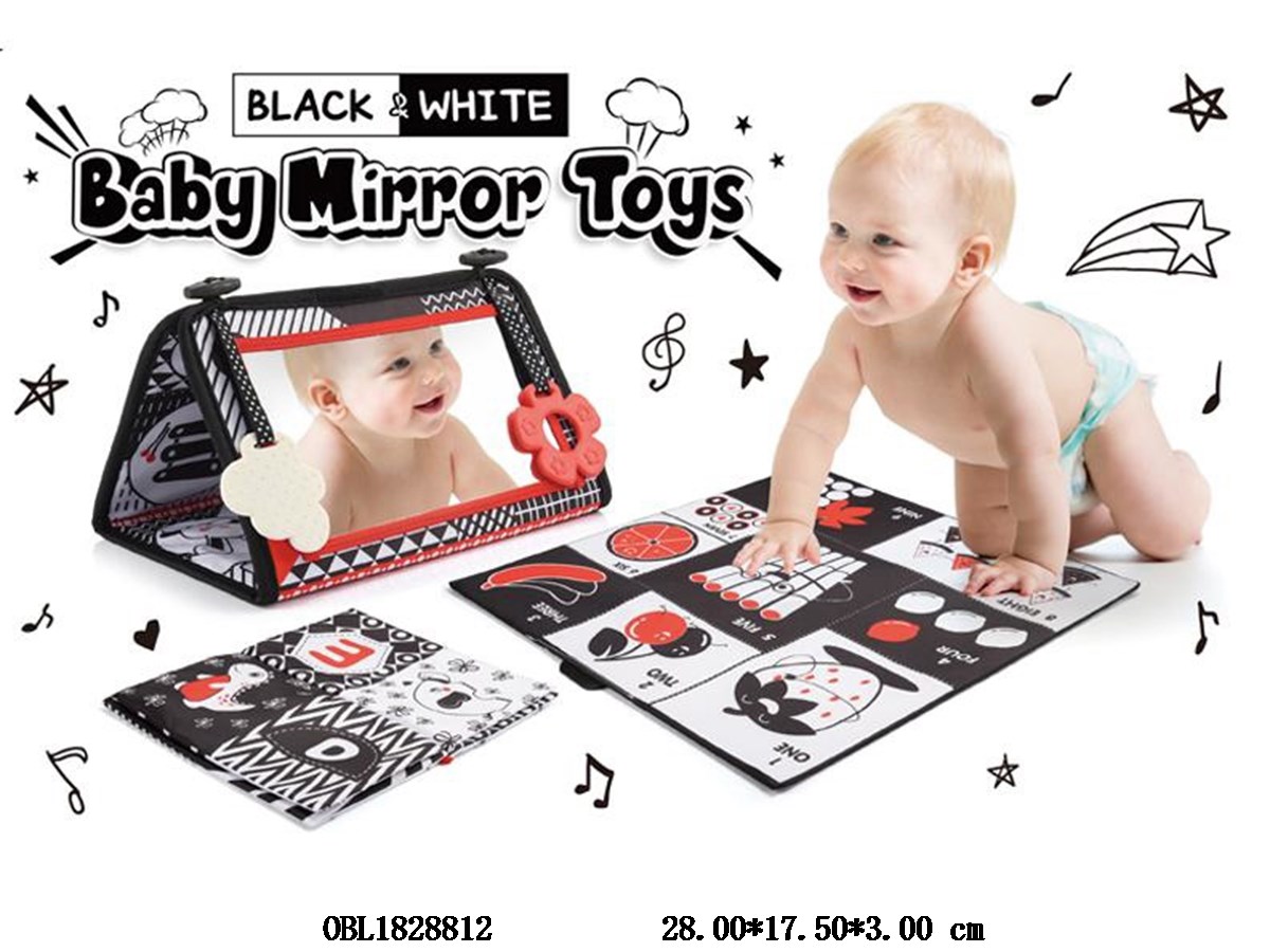Black and white baby floor mirror with book page PE bag